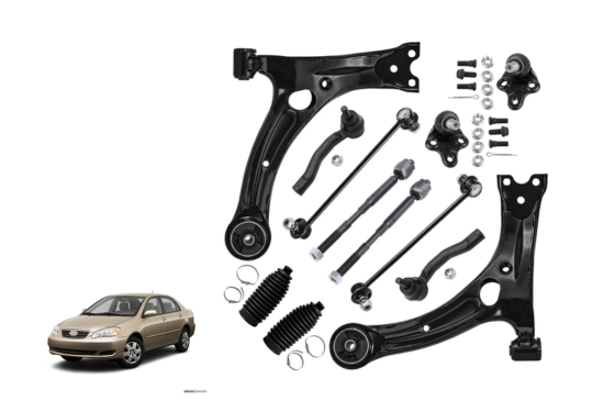 Lower Control Arms, Tie Rod Ends, Ball Joint, Rack Ends, Links and Dust Cover.